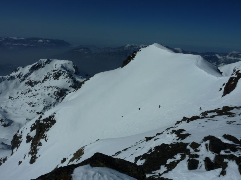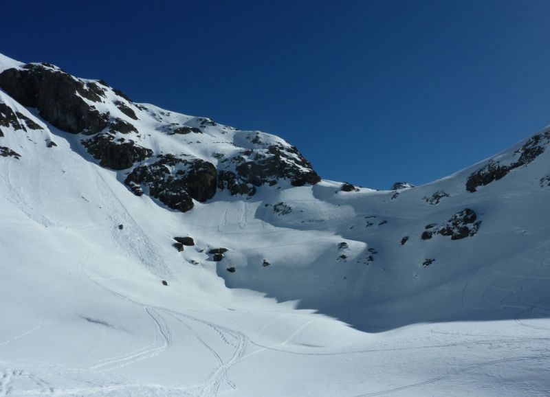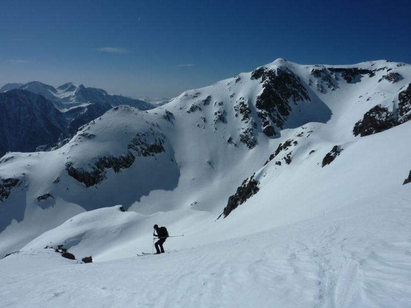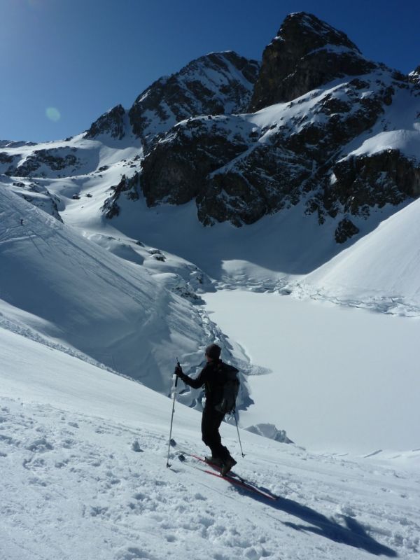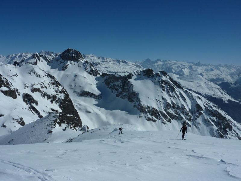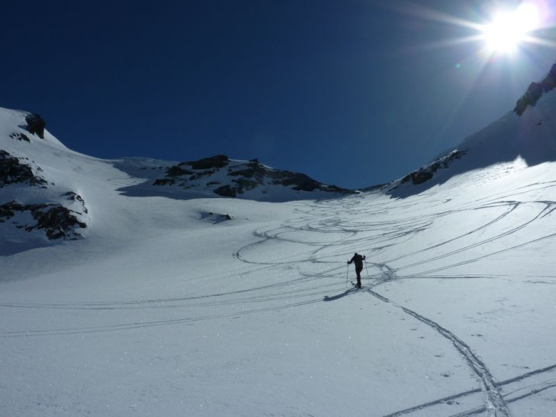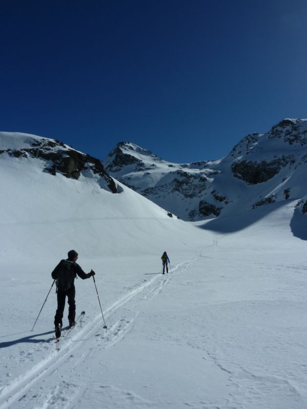 Magnifique boucle qui nous a permis une incursion, une première pour nous 3, dans ces vallons relativement peu fréquentés au-dessus de la Grande Vaudaine. Relativement car j'ai trouvé qu'il y avait quand même de nombreuses traces mais dans le sens inverse au nôtre. Nous avions visé la transfo. mais notre horaire trop tardif nous a amené à skier sur de la belle neige mollassonne.
