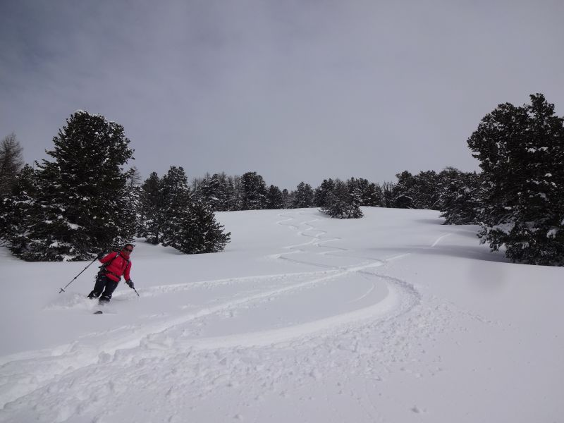Poudreuse partout avec la chute d'hier augmentant vite au dessus de 1500, jusqu'à 40 cm non remaniée par le vent Et n'ayant pas eu le temps de chauffer avec le beau du matin.