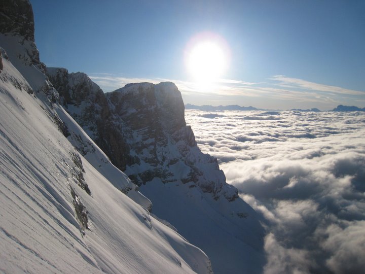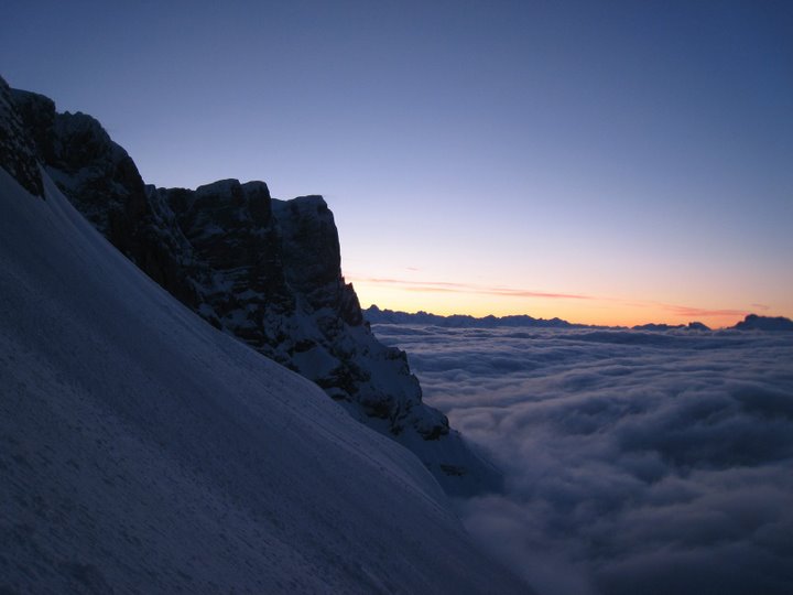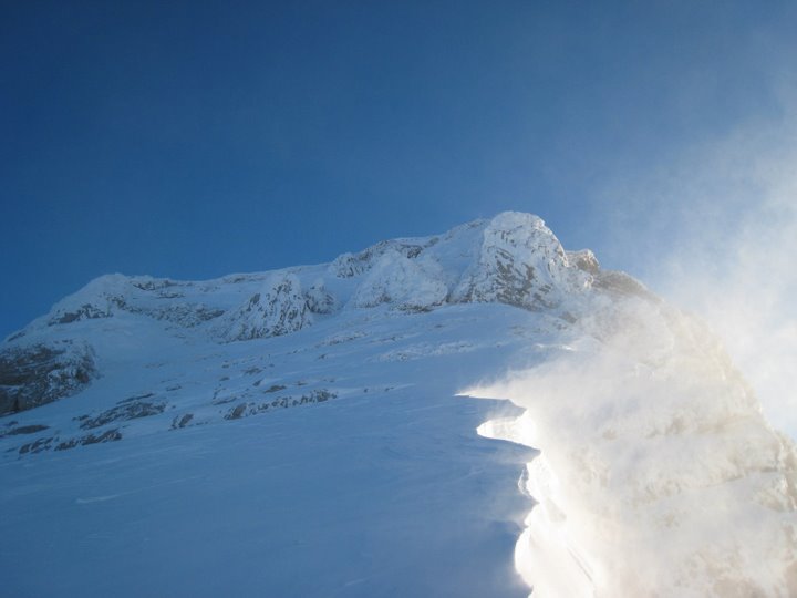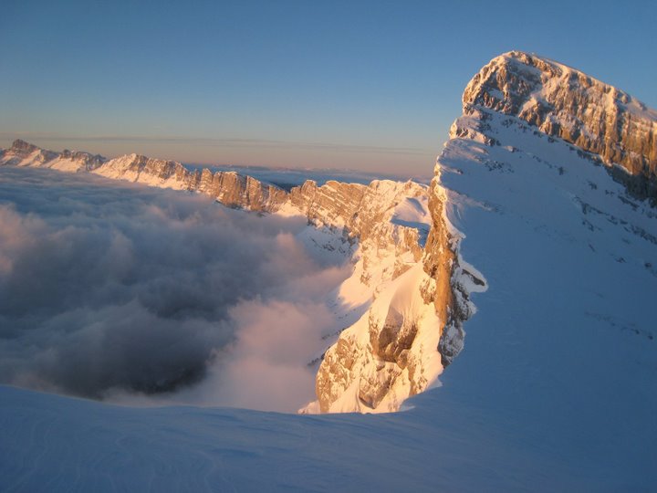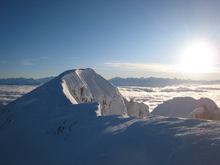 Woaah!!! Quel itinéraire sublime! Les conditions de neige ainsi que le remplissage sont excellent! Toutes les barres sont enneigées, un coup de pelle pour passer la corniche et hop je foule le sommet à 8h, dans une ambiance polaire!