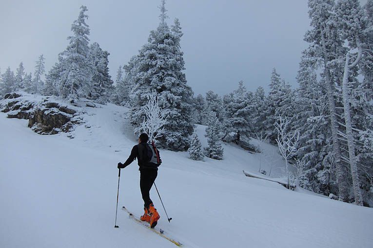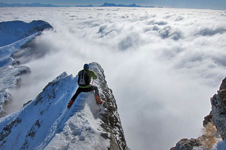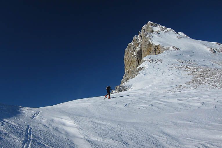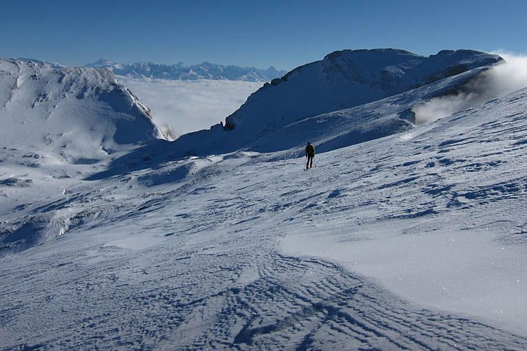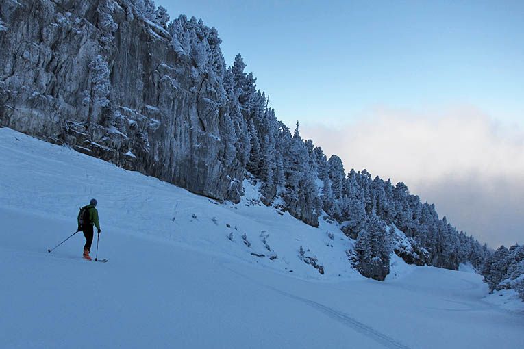 Devait-on publier cette course réalisée à 75% sur des pistes de ski-alpin ? Oui pour rendre compte des conditions sur le Vercors, oui encore parce qu'en partant avant l'ouverture des remontées, nous avons sans doute croisé moins de monde aujourd'hui que sur certaines randos classiques (Jasse, Vans...) et oui enfin pour ce final exclusivement du domaine du ski-alpinisme, pour lequel on prévoira des crampons et au moins un piochon, voire une petite corde pour assurer la descente. [Voir aussi ici->http://lta38.over-blog.com/article-ski-alpinisme-a-la-grande-moucherolle-65527487.html]
