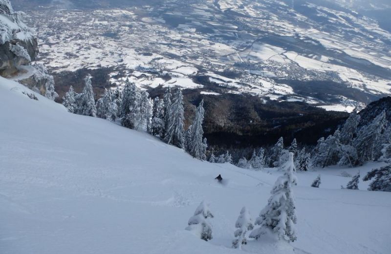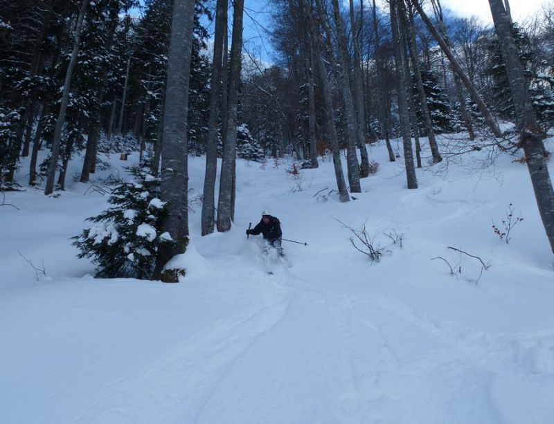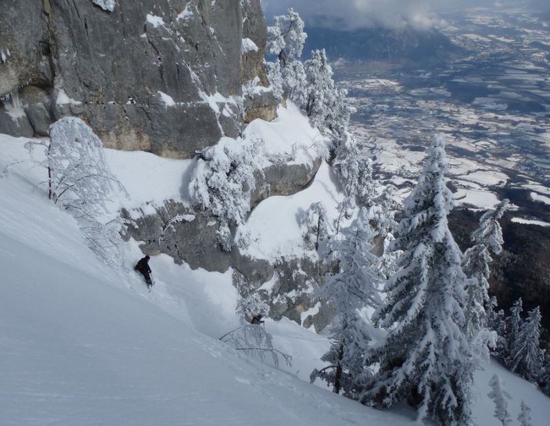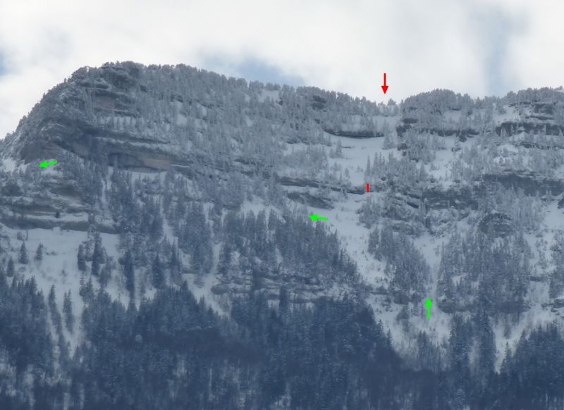 Curieusement, il semble avoir moins neigé ici que quelques km plus au sud (Aulp Du Seuil), et dès que l'on aborde du terrain raide la couche récente n'est pas assez épaisse pour masquer la sous-couche dure.