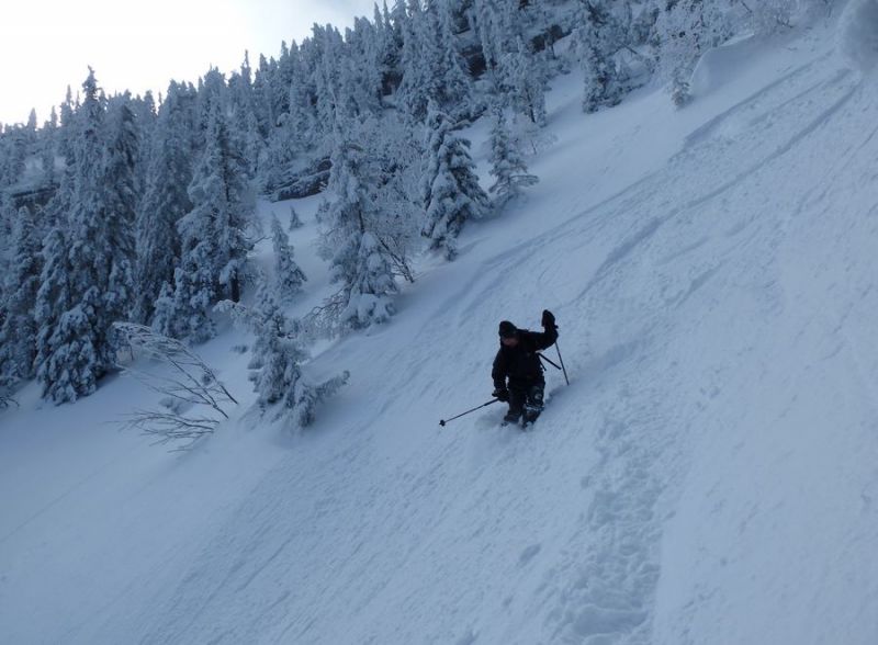 Poudre encore très légère sur la croûte de regel héritée des épisodes à limite pluie-neige élevée. Assez peu de travail du vent, sauf aux abords immédiat des crêtes.