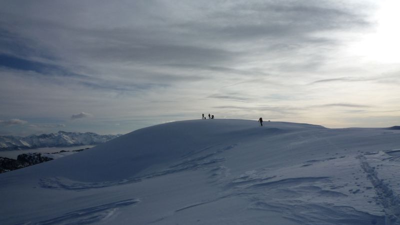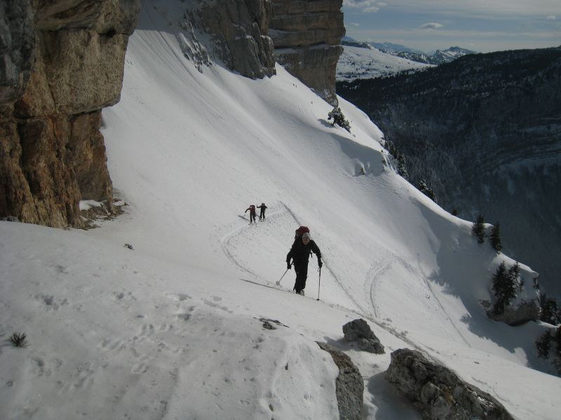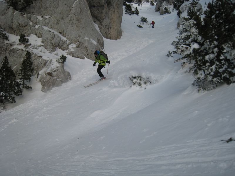 L'objectif étant de réunir sur une bel itinéraire de la neige à tracer et le coucher de soleil sur les falaises. L'exposition lorsqu'on est dans le couloir est bien réelle. La progression entre les plaques, c'est en fin de compte révélée, assez "minutieuse", laissant finalement suffisamment de passages pour que nous passions. Ce fut donc une bonne pioche, bien que le ciel se voile un peu à la descente nous privant de l'éclairage attendu.
