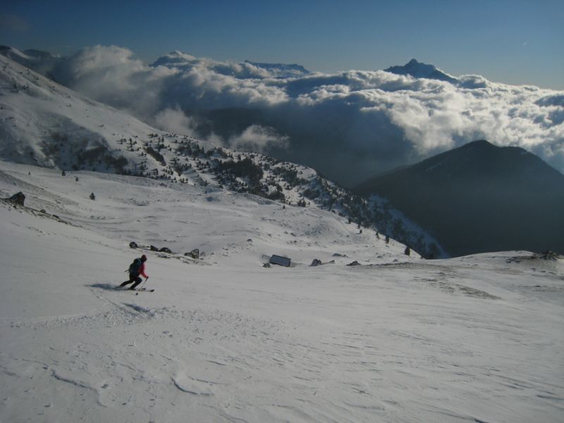 très belle journée au final avec une skiabilité plus qu'honorable. pas mal de randonneurs à la Cavale d'Oris. seuls sur l'itinéraire à partir de la baraque du Jas. un we placé sur le [poussage de bras->http://www.skitour.fr/sorties/petit-som,36800.html].