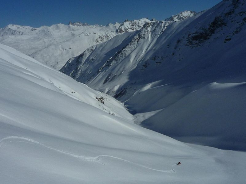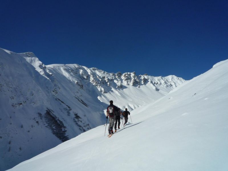 L'agréable balade s'est donc muée en découverte de cette combe de Beaujournal, skiante sur le haut et sur le bas, plus ingrate au milieu à cause des nécessaires traversées à flanc.