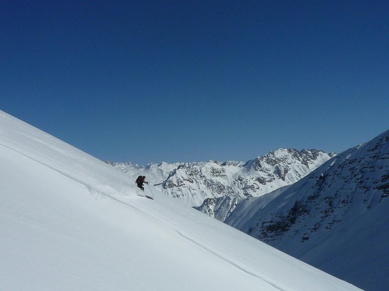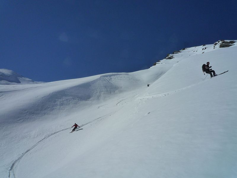 Les vents de toutes orientations, notamment est, ont bien travaillé dans le secteur : les 300m précédants les crêtes ont été très soufflés, formant des congères et des plaques dures.