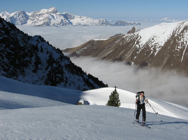Pour paraphraser Volo "itinéraire skieur de premier ordre...". Vallon magnifique et tranquille avec belle vue sur le dévoluy pendant toute la montée. La neige était parfaite et nous avons pu buller tranquillement en attendant que ca décaille: pas la même pression que la [veille->http://www.volopress.net/volo/sortie2271.html]. On conclut ainsi d'une belle manière le module transfo de cette semaine.