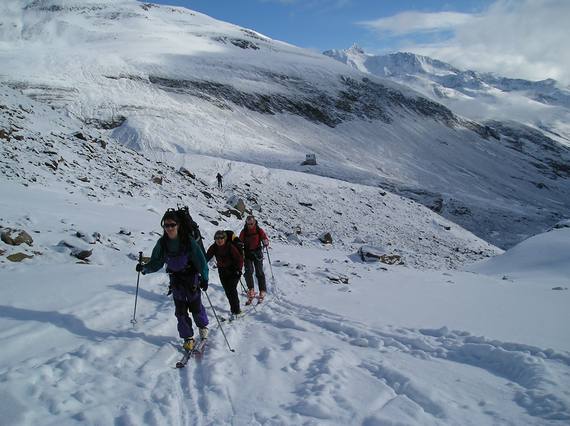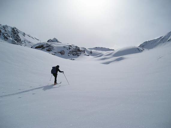 De Vent au refuge il n?y a pas de neige. Tous les versants sud sont déplumés très hauts. Dans la soirée et la nuit il est tombé quelques cms " cache misère " autour du refuge. Heureusement au dessus de 2500 m environ dans les versants protéges l?enneigement devient correct.