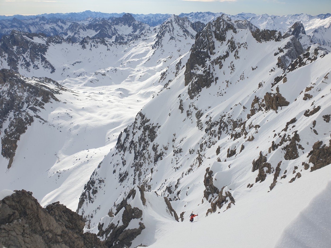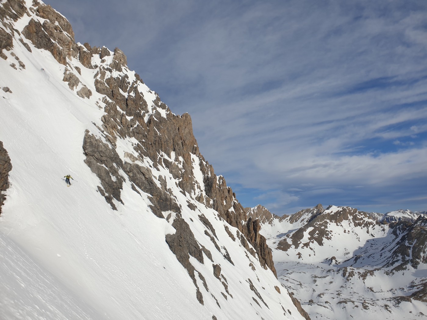 Répétition en Aller/retour de la face Est de Parias Coupa (Cibiroles sur les cartes italiennes) ouverte par Diego Fiorito et Robi Garnero. Julien et Arthur redescendent et je continue avec :