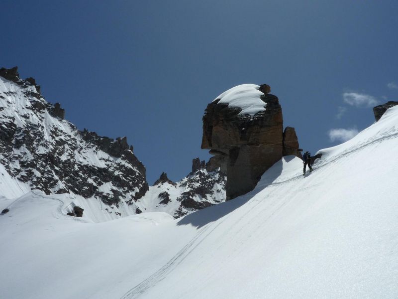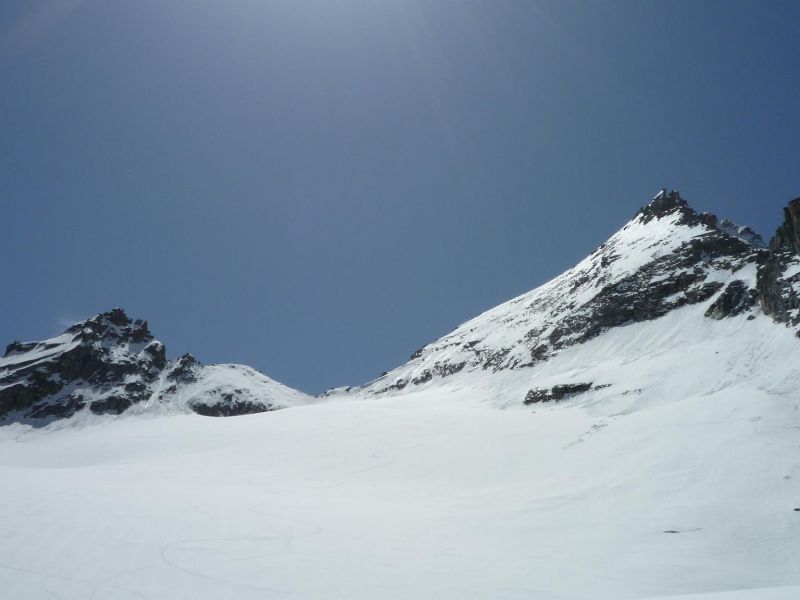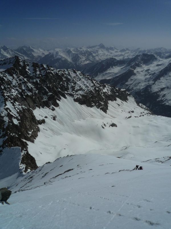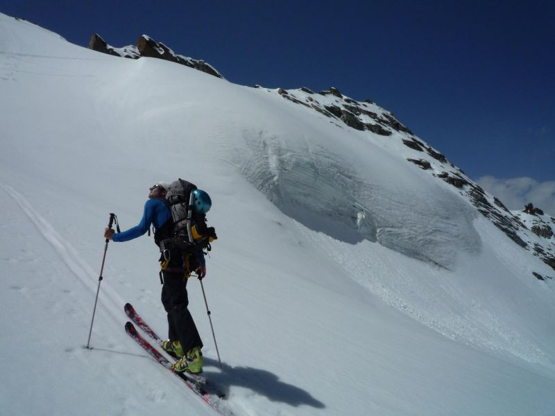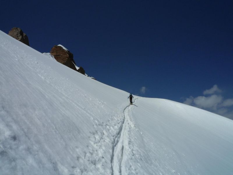 Devant une telle chaleur face un regel médiocre, on n'atteindra pas le sommet, pour chausser vers 3650m.