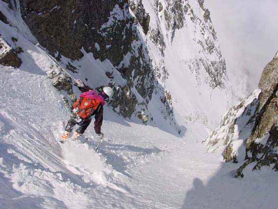 * heure début descente : itinéraire atteint depuis Oulles par B6 (voir course 055). 1600 m de ski entrecoupés d' un rappel de 30 m dans la goulotte (relais en place).