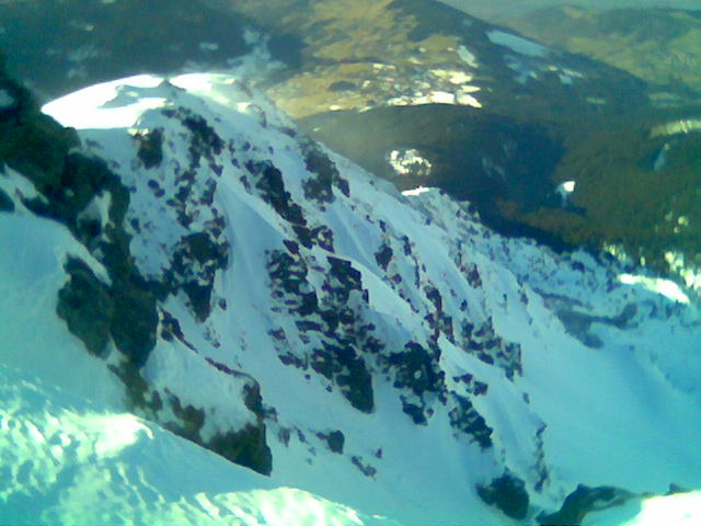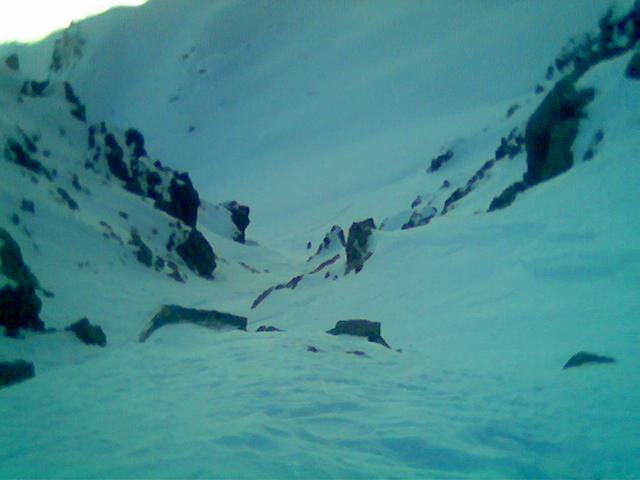 Parti bien tard, je partai pour le col de la Jasse puis la Cime du même nom. Finalement, au dessus de la barre intermédiare de la combe de Bédina, je rattrape un sexagénaire qui bataille dans cette neige délicate pour faire la trace et qui tire vers le couloir Nord. Petit brin de causette et on enquille vers ... le couloir. Une belle sortie en haut au soleil, ça réchauffe, mais ça souffle. (NB : qualité de mer.. des photos - depuis mon tél portable ... beurk)