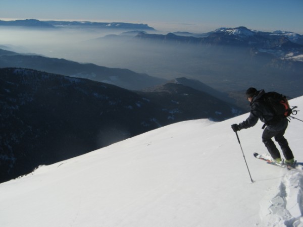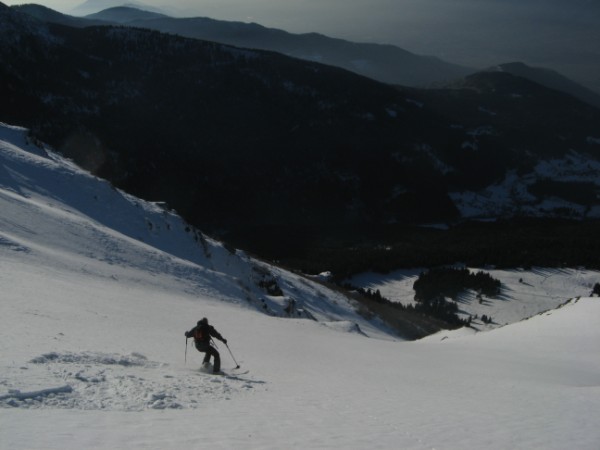 Quelques accumulations en N dans la combe de Bédina qui nous ont surpris par rapport aux bulletins. En W, bonne cohésion entre la poudre et le fond dur.