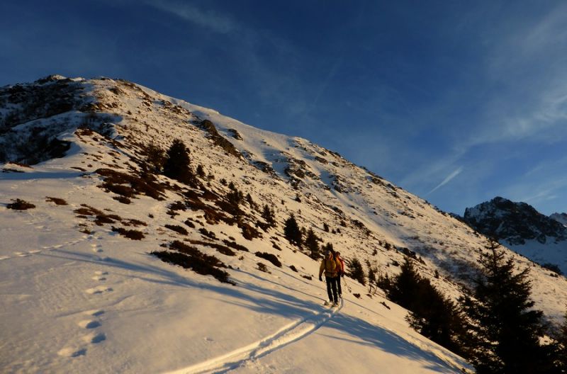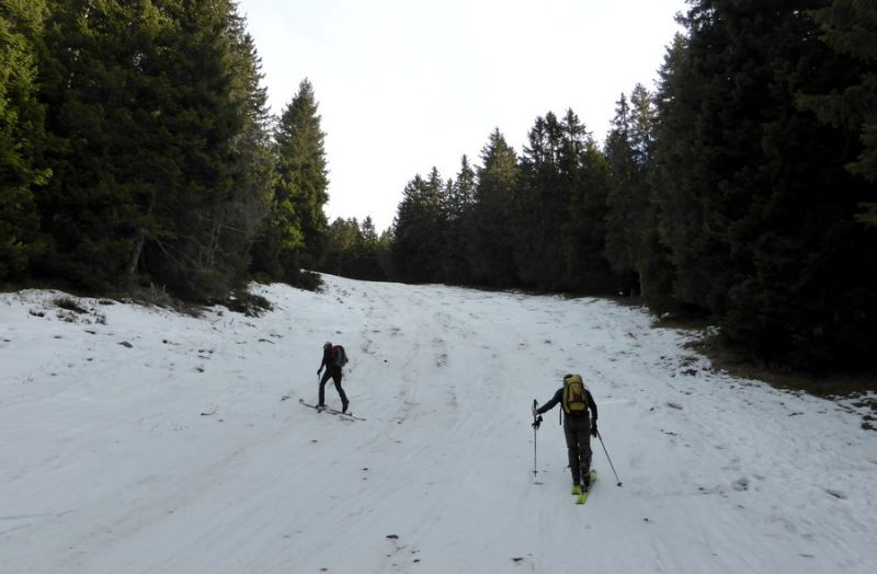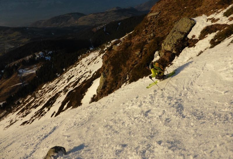 En versant froid, encore un peu de poudre mais le tassement a fait son oeuvre.