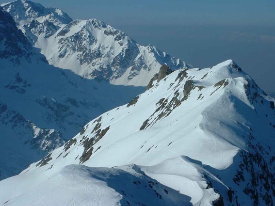 Montée à la Jasse depuis le Pleynet, évident et skis aux pieds de bas en haut. Au sommet, suivre les aretes de Bedina jusqu'à la Dent Blanche (voir B22) , un peu de ski sur l'épaule , et plein sud dans la pentes raides qui surplombent ceux qui montent depuis Prabert (gaffe, pas de faute, la foule vous regarde !!) . On s'est arrêté sur le replat au dessus du habert d'Aiguebelle vers 1850m. Puis c'est repartir pour la Jasse Sud par B17 et descente plein Nord par un couloir évident (40°/250m) qui part quasiement du sommet et plonge vers la piste (itinéraire) issue du Pouta. D+/D- : 1650m
