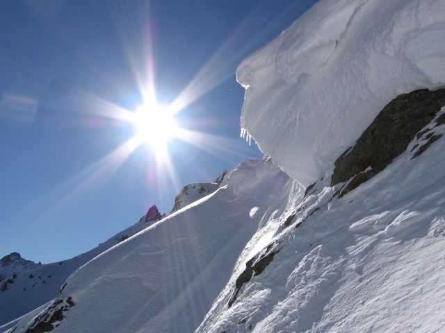 RAS. Juste quelques mini coulées provoquées par nos ski dans le couloir S de Belle Etoile (13 h).