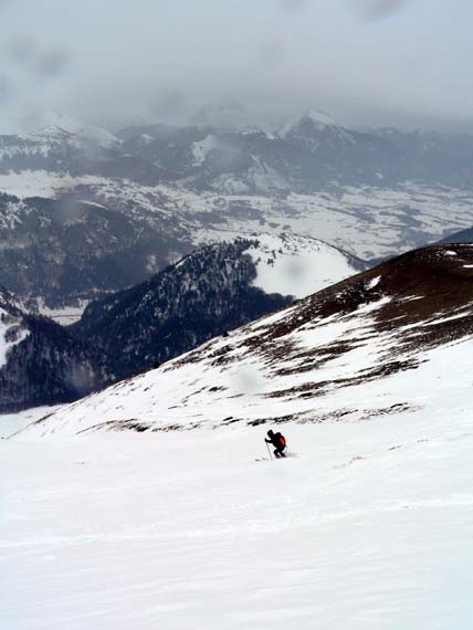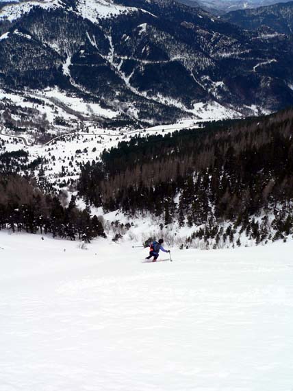 neige tres dense ne nécessitant pas de sous-couche. Au-dessus de 1600 m, des accumulations parfois importantes. Pas de declenchements possibles même sous corniches et congeres, si ce n'est d'enormes escargots. En dessous de 1600 m, neige à skier tout droit. Zones de crete tantot degarnies tantot presentant des reliefs tres importants (100 cm) dus certainement à un vent de nord-est, voire d'est.