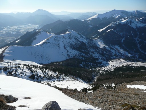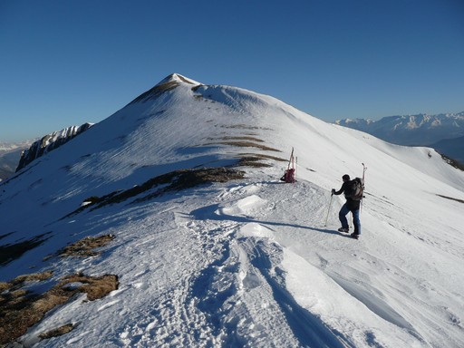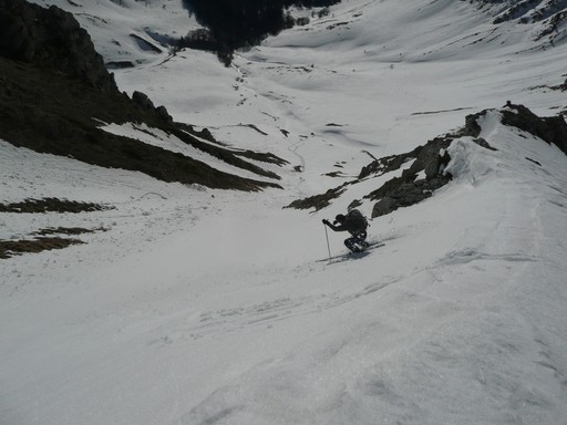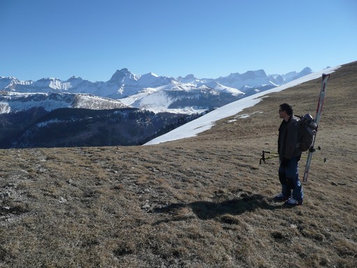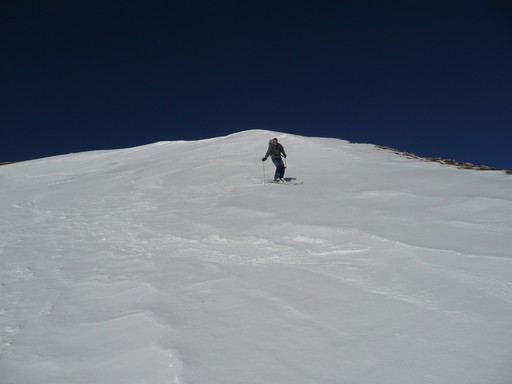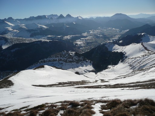 Petite interrogation au départ quand on voit l'enneigement minable mais finalement ça skie intégralement (sauf sur les arêtes) jusqu'à la voiture. Le Jocou est un formidable belvédère pour observer les sommets alentours. On se sent vraiement "dans le sud" sur cet itinéraire.