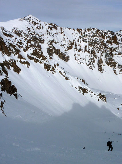 Le carton (ou plaque dure) en surface n'est pas très épais (5-10 cm), pas très résistant et il domine une bonne épaisseur de neige sans cohésion. Une plaquette de 30 cm x20x50 était partie dans la bosse sous 2500.