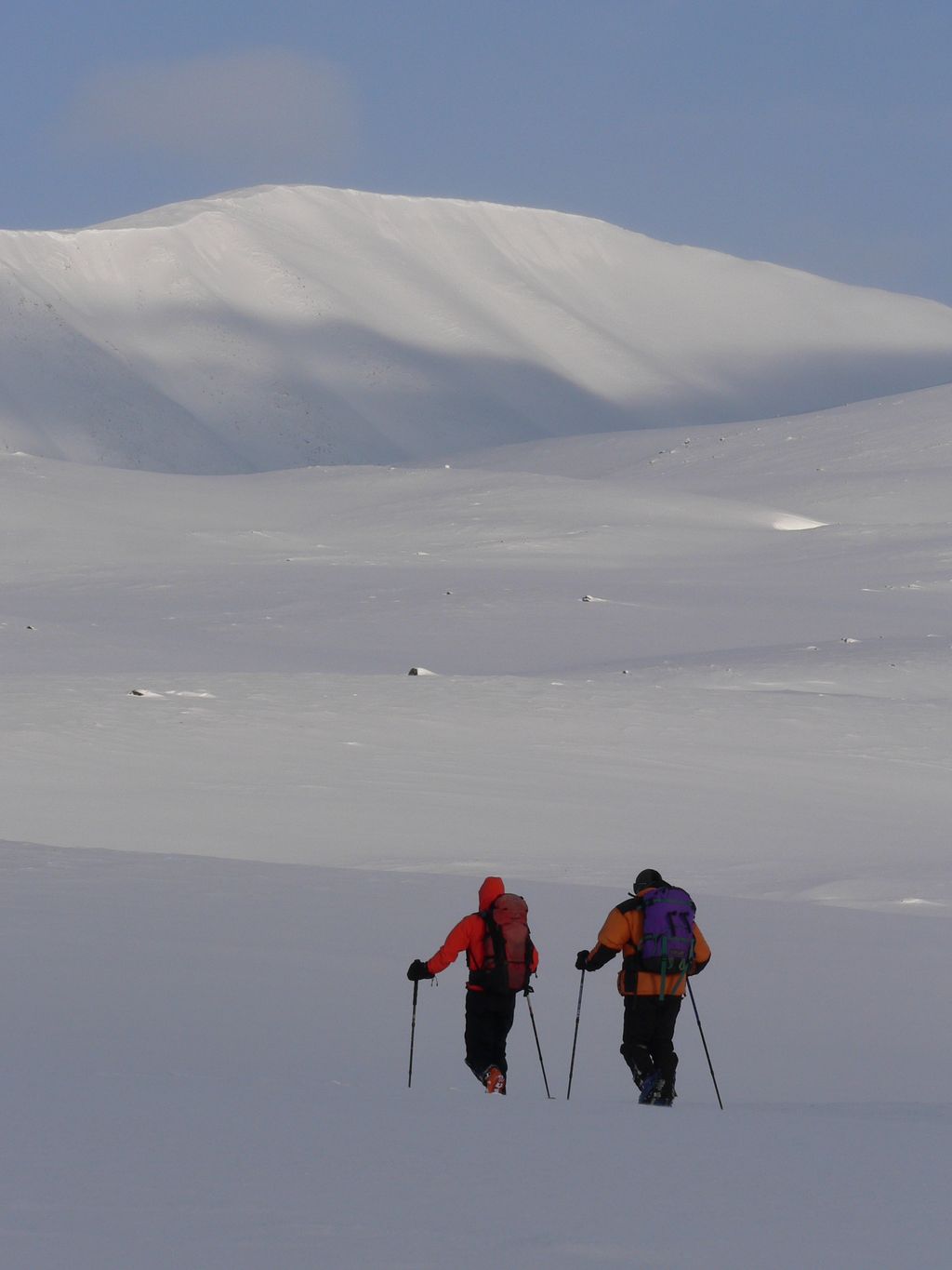 Traversée du refuge Singi au refuge Sälka. Montée au Gaskkasnjunni (sommet à l'est du refuge Sälka, 1721 m) et descente par ses pentes sud (17km, D+1050, D-900).