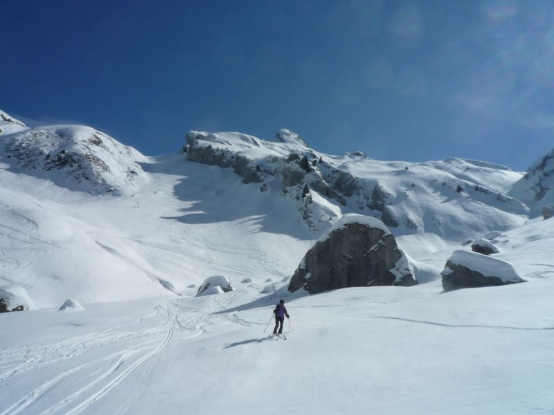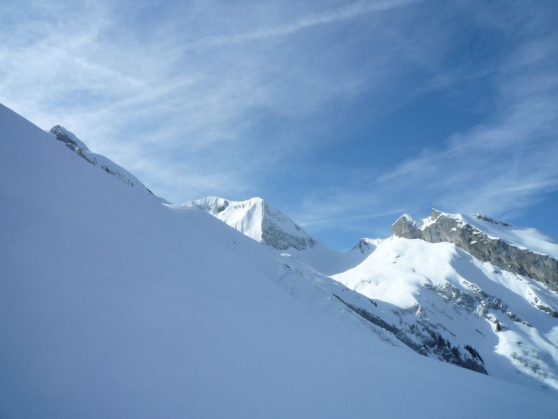 Partis pour l'Etale Sud ,nous avons changé d'idéee vu la petite chute de la semaine.Autant bénificier des bonnes conditions de neige froide et découvrir cette belle combe de L'Aulp du Fier.