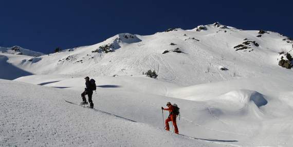 Départ vers 880m 1km avant le Godet. Route forestière pendant 1h jusqu'au Laquais. Sortie de la forêt à 1300m sous les chalets du Darbelay. Ensuite 800m de belle pente avec plusieurs ressauts.