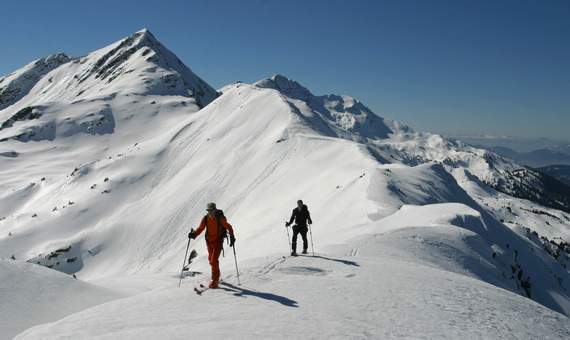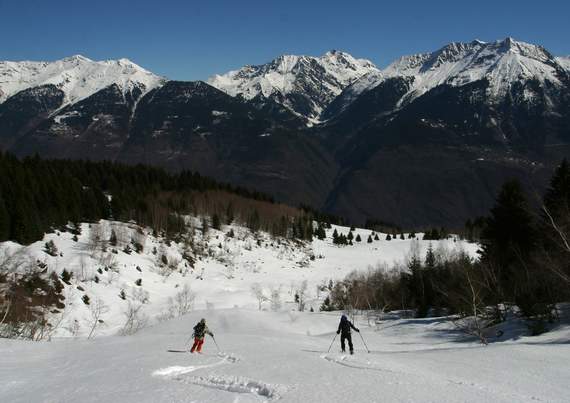 Après 1h de montée sur une route forestière un peu ennuyeuse (elle passe bien à la descente) on découvre une belle pente de 800m de dénivelé. Les sections entre 1700 et 2100m restée à l'ombre étaient encore en poudreuse et pas l'ombre ... d'une trace (preut être les premières de cet hiver tant le coin est méconnu).