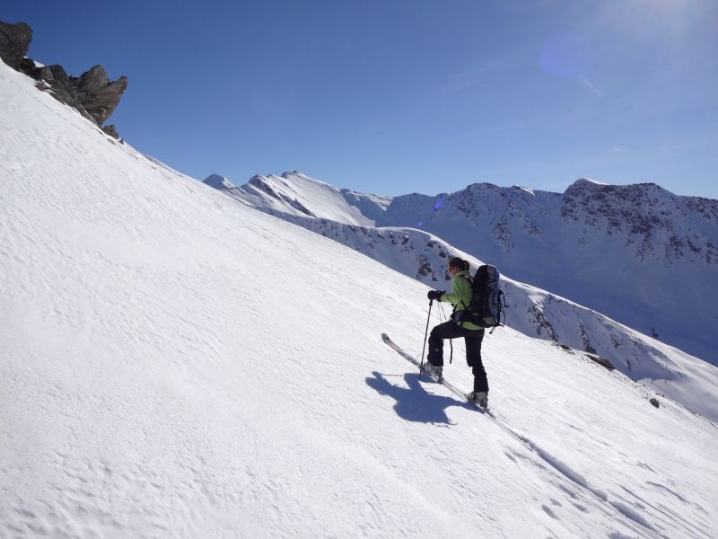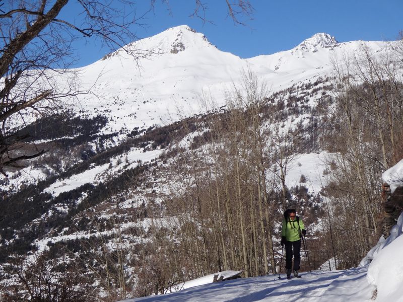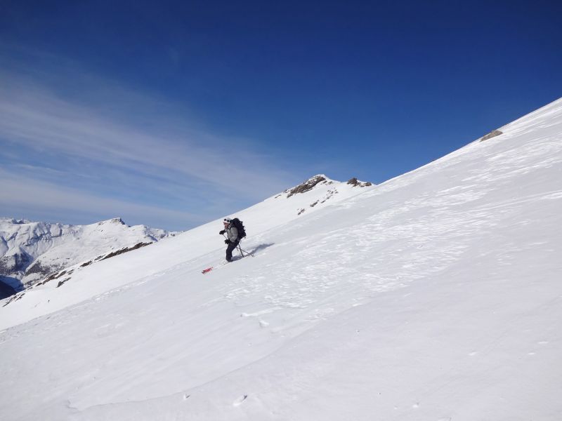 Pentes ouest comme E17. Emprunter au départ la piste de ski de la remontée survivante de la station plutôt que la piste forestière. Le terrain se prête au choix de tracés toujours en bonne neige