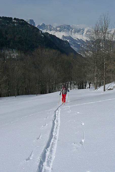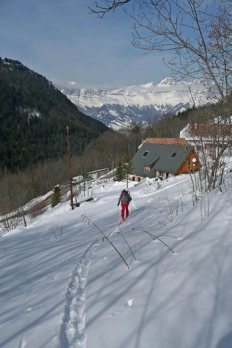 On a choisi une voie plus directe, non tracée et un peu plus soutenue que la classique, permettant d'éviter le petit passage déneigé en sud et de skier plus directement (de manière plus soutenue aussi). L'orientation globale est ouest
