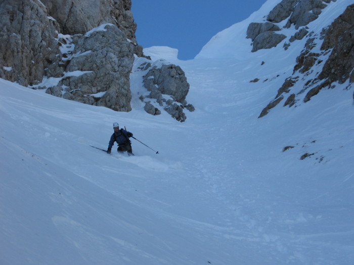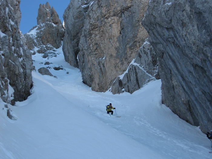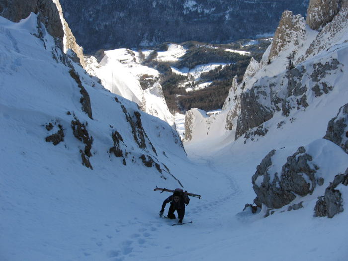 De gros départs de fond en rive droite du ravin d'approche. Sinon excellentes conditions même dans la forêt. Le moins bon fut le couloir , un peu travaillé par le vent mais les pentes d'accès étaient intactes avec des conditions si bonnes qu'on a repeauté pour rejoindre une beaume sous la Peyrouse via l'abri de la peyrouse. Forêt assez raide et très skiante.