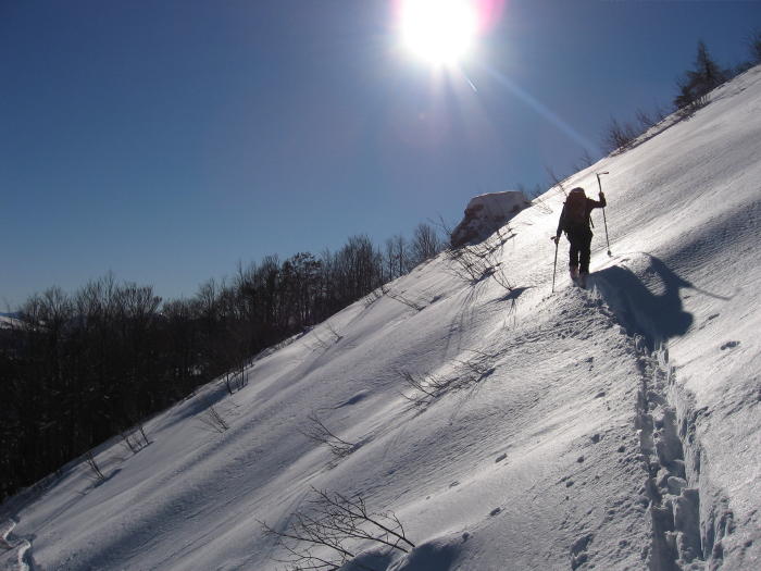 K1 en AR puis on remet les peaux pour rejoindre la beaume sous la Peyrouse. D+/D-:1500m