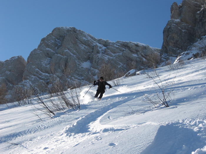 Conditions de neige extra dans les pentes sous la barrière E. Au vu des conditions actuelles c'était inespéré. Bon ski de haut en bas, très ludique dans la forêt de Hêtre taillé pour le ski. Merci à PBV et PPY pour le bon plan.