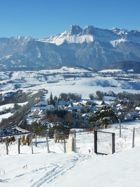 Monteynard-la- Ville > croupe sud -> Majeuil -> talus de route jusqu'à l'intersection avec la route principale. Stop immédiat d'une charmante matheyzine qui " ne prend pas en général, mais un skieur quand même". Grand merci à elle.