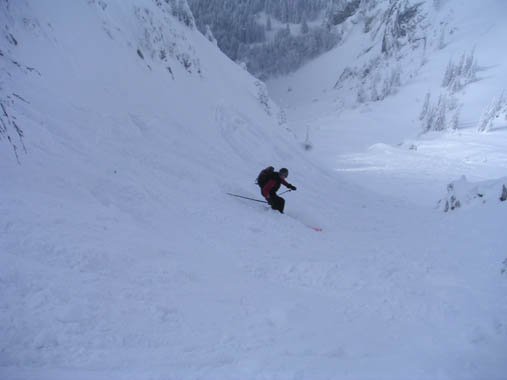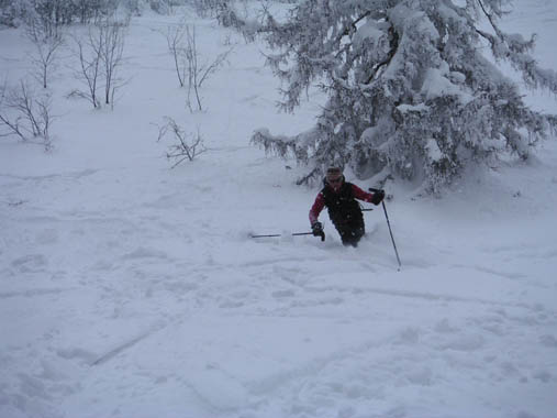 De la poudre partout, le sommet de Cottaves orienté Est était un peu revenu, la partie forestière pas mal traffolée. La descente sur Vermorel n?était pas tracée, quel bonheur !