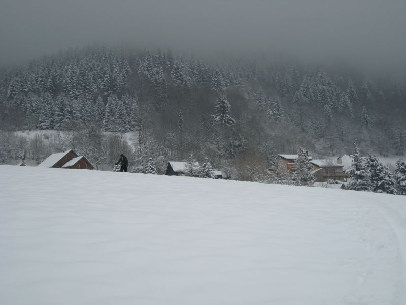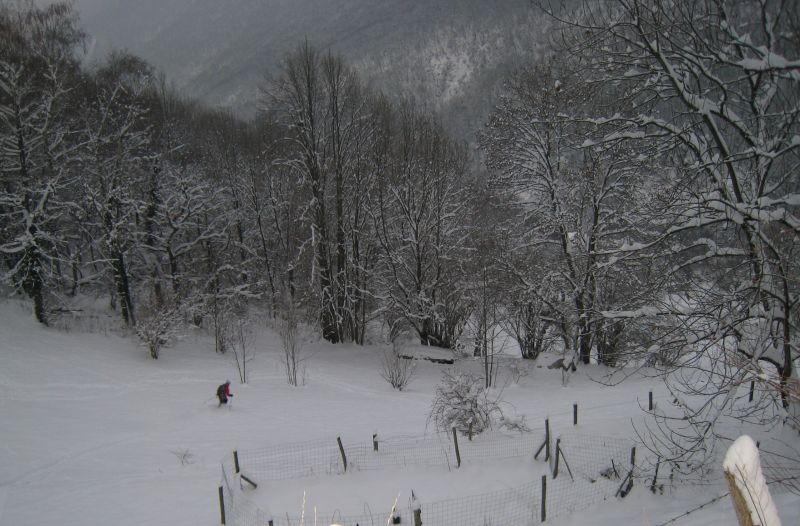 Classique. L'itinéraire a été tracé la veille (merci à eux).Loïsyann s'est offert un supplément en skiant jusqu'au hameau du Gua (500) à travers champs.