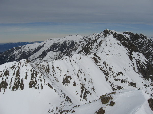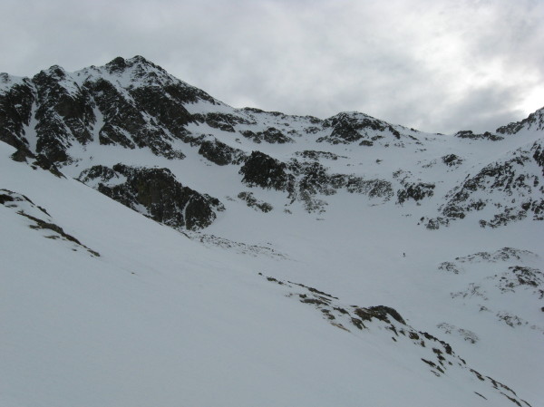 Haut du couloir NE vitrifié sur au moins 30-50m: descendu 5m en crampons pour voir de + près: presque taquet avec les alus...+ grosses rafales de vent remontant le couloir=> On reviendra un jour meilleur. Sinon pas de dégel à cause des voiles. En altitude on trouve une croute de verglas dans les zones déplumées par le vent, avec les voiles et la visi médiocre, il faut bien viser les zones de neige sous peine de descendre + rapidement que prévu...gare aux passages exposés dans ces conditions