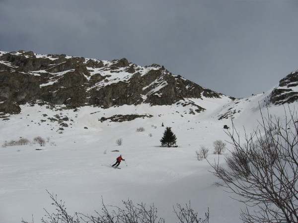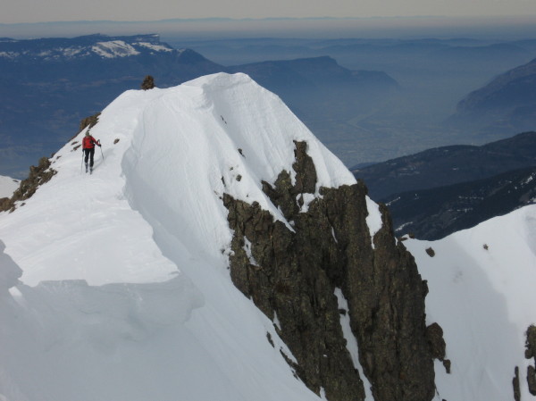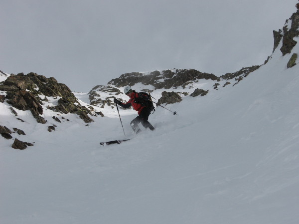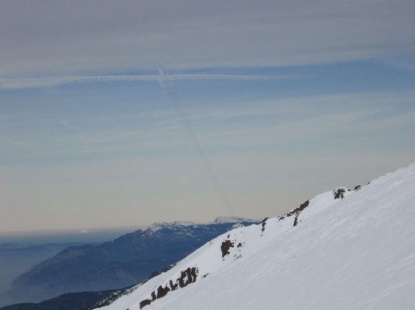 Le second but "verglas" du WE. Mais pas de regrets car les rafales de vent et la mauvaise visi à cause des voiles auraient gâché le plaisir. Bon ski toutefois jusqu'à 1450 avec un bon grip dans les zones transfo, très mauvais dans les zones froides glacées. En dessous c'est pas terrible: le verrou de pierre pourcy n'est pas assez enneigé= les semelles s'en souviendront. 15 min de portage au retour.