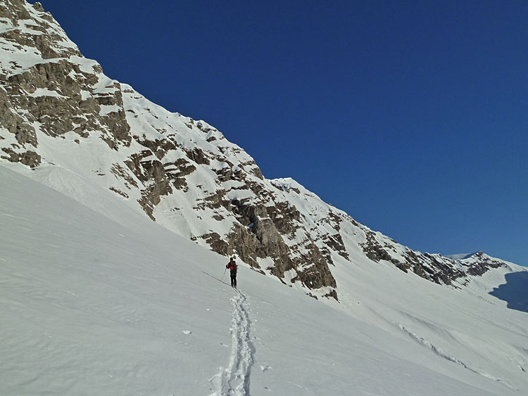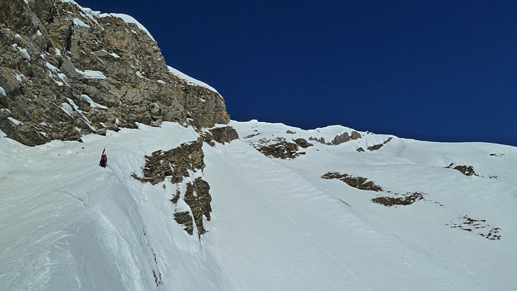 les mouilles>>accès au pied de la face par le couloir E directement au nord du pt 1864 puis traversée.