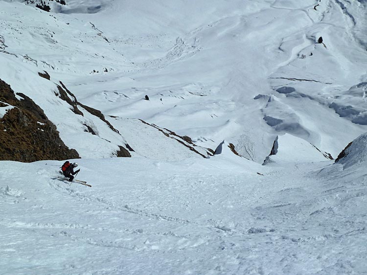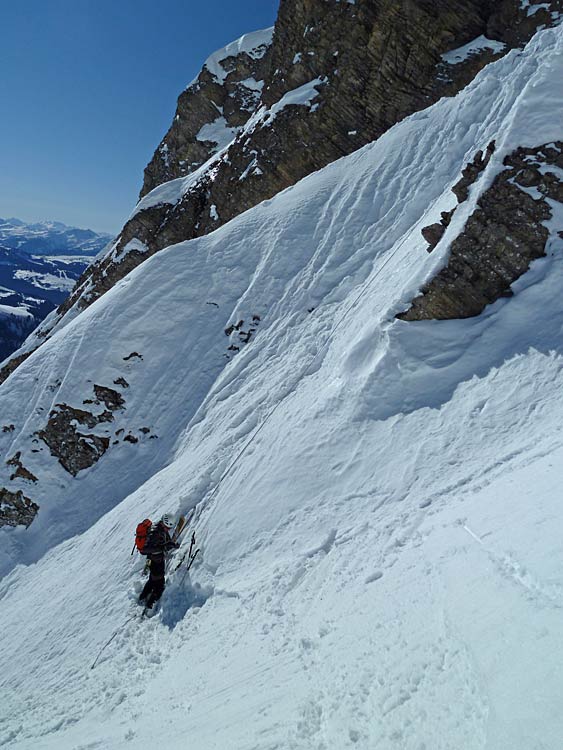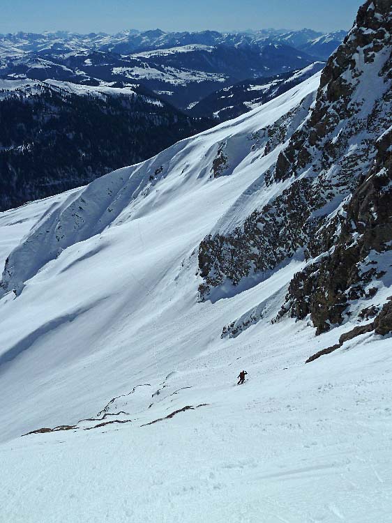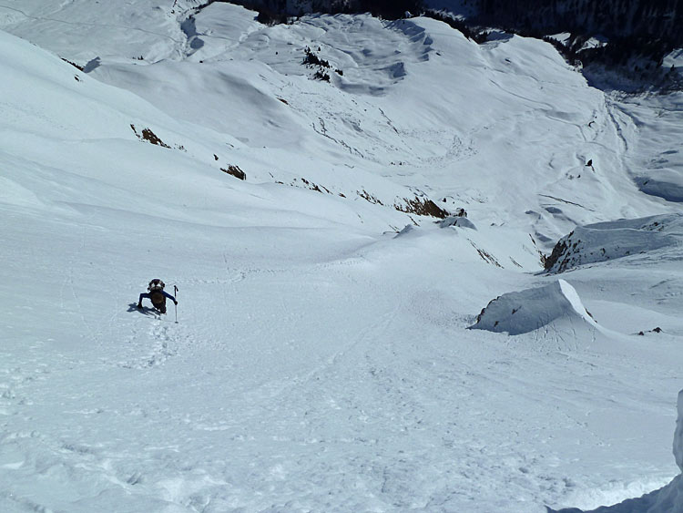 On entre dans la face skis aux pieds grâce à l'excellent travail de fraisage de corniche fait par Mick, digne de la DIR/DDE de Haute-Loire.