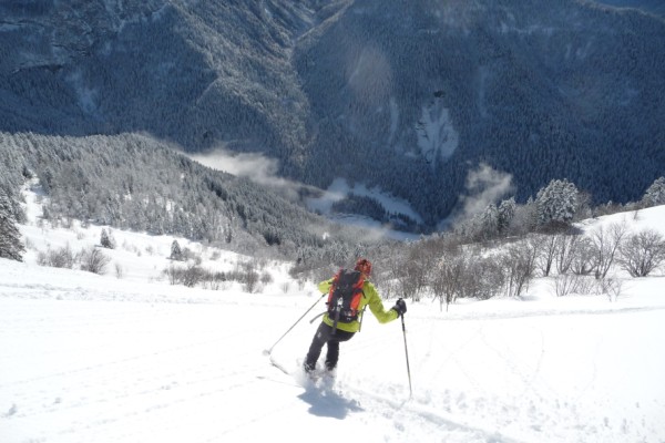 Habitants le Grésivaudan, on voulait aller faire B7, donc marche d'approche par le Giclard pour diminuer le temps passé en voiture. De plus, le but étant d'avoir les montées tracées et les descentes vierges ! Il a fallut ralentir à la montée au Roc d'Arguille pour bénéficier de la trace de P. Gignoux :), sinon le reste nickel (il a fallut tracer la monter au Col de la Saulce quand même !). Superbe circuit, se méfier, neige stable pour la descente NE sur le ruisseau de Mallisard, car départ assez large et un peu raide, bien classe. Entre la Scia et le Bec de la Scia garder les peaux. Du Bec de la Scia, descente directe dans un couloir SW court et raide pour rejoindre la combe vierge de trace ; en bas de celle ci portage sur 150m, manque de sous couche avant la prairie.