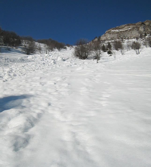 ça passait encore mais c'est un peu juste pour le recommander. le haut et le bas sont excellents en transformée avec très faible enfoncement. la partie forestière est suffisamment enneigée mais il y a toujours ces vernes ou branchages qui n'ont pas été couchées par les chutes de neige trop légère du début de saison.