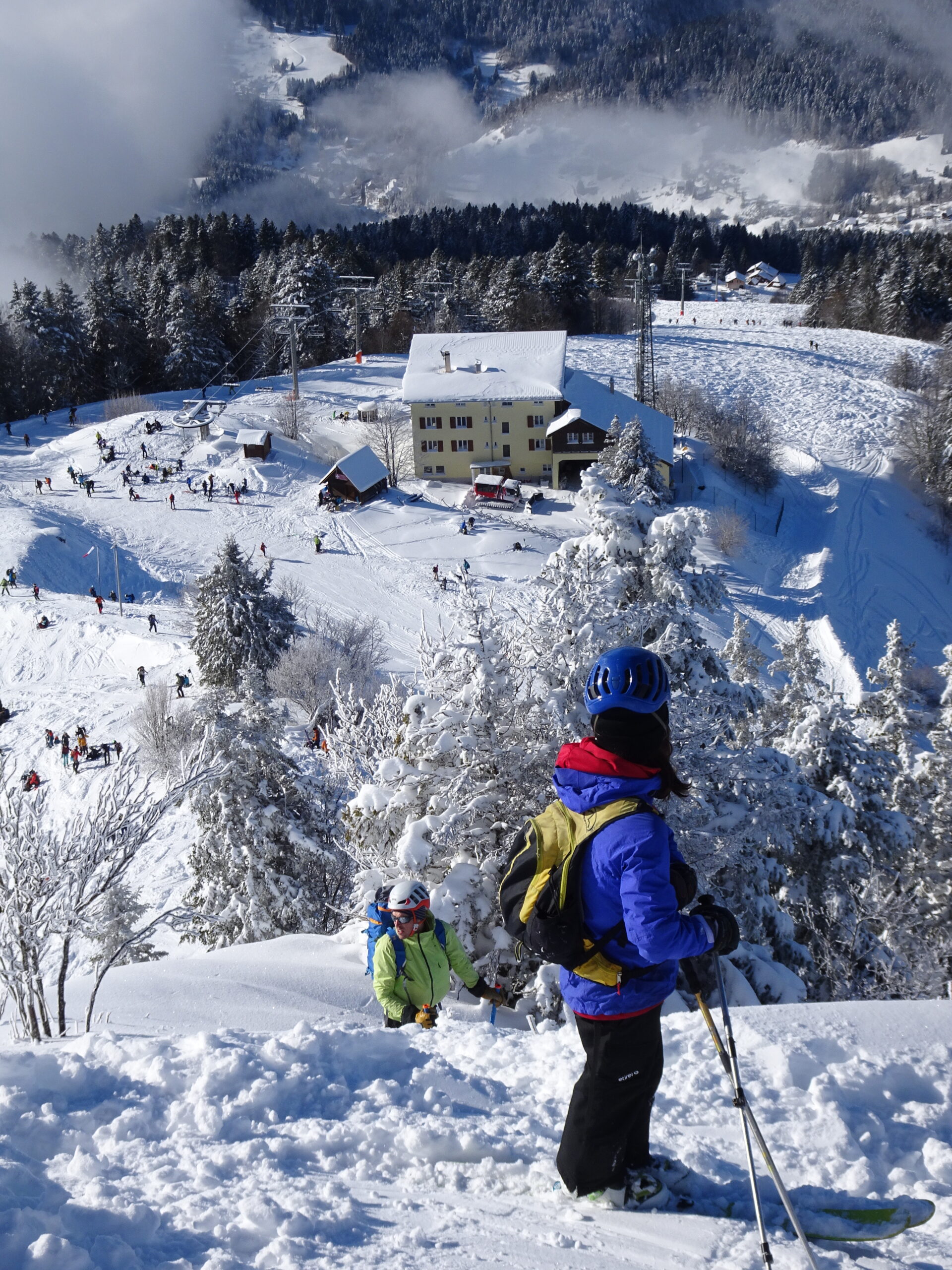 Beaucoup de monde (et sur la route aussi en conséquence). Les pistes sont entièrement tracées mais comme la neige est restée bien froide avec une bonne quantité, on skie sur un matelas bien souple.
