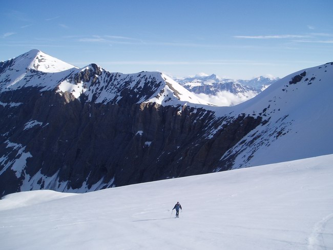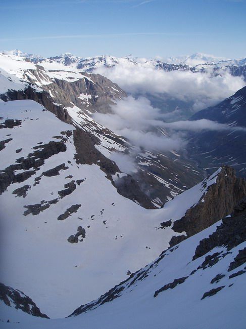 Lamet par le glacier -> descente par la face est -> Roche Michel et son couloir nord jusqu'à la brèche de la pointe des Fallets -> remontée sur l'arête du Lamet et retour (D+/- 1800). Sur le glacier du Lamet, le passage du bombement glaciaire présente une bande de 2 mètres de large de neige/cailloux et glace sur une dizaine de mètres (passé en crampons à la descente). L'enneigement est continu jusqu'au fort de Ronce ensuite moyennant un déchaussage sur 50 mètres de deniv on arrive à quelques mètres de la route.