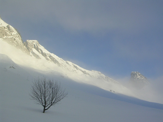 Les bombements raides de la face sont peu enneigés, les dalles ne sont pas loin et affleurent par endroits. On y trouve une croûte cassant de 5 à 10 cm surmontant soit une neige tassée, soit une neige sans cohésion type "sucre en poudre".