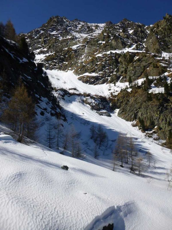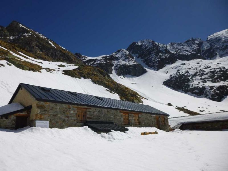 Encore un joli tour qui emprunte trois cols et permet de parcourir trois vallons sauvages (Laures, Lussert, haut du val San Marcel). La route forestière qui monte à l'Arp (1311m) est interdite à la circulation dès 1050m mais complètement déneigée. La dernière fois que j'ai remonté le vallon des Laures, c'était il y a 30 ans ! J'avais rejoint à Airolo dans le Tessin deux amis Nadia et Jean-Christophe qui avaient entrepris de traverser les Alpes en autonomie de Vienne à Nice. Sylvie et Gilles nous accompagnaient pour la partie de Zermatt à Val d'Isère. Le bivouac Ménabréaz était alors peu accueillant. Heureusement grâce aux talents de bricoleur de Gilles nous avions pu finalement y passer une très bonne nuit. Aujourd'hui il est très bien équipé avec poêle à bois, gaz et électricité.