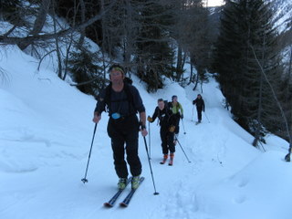 montée sans problème, tous types de neige selon les expos. descente: très stable, coulée de surface compte-tenu de la pente et du couloir qui canalise, sans conséquences. vers 1800 c'est blé. attaque au sommet, toujours se méfier des corniches même si elles semblent robustes et peu formées au regard des années passées.