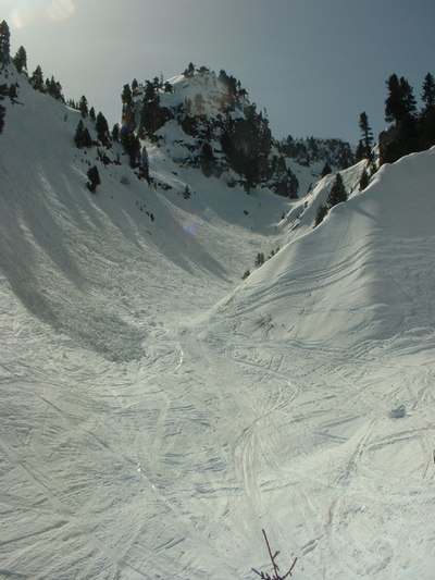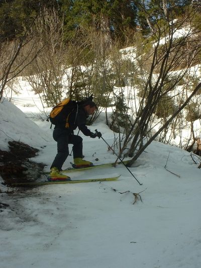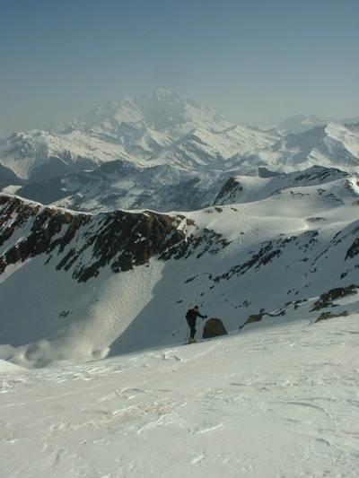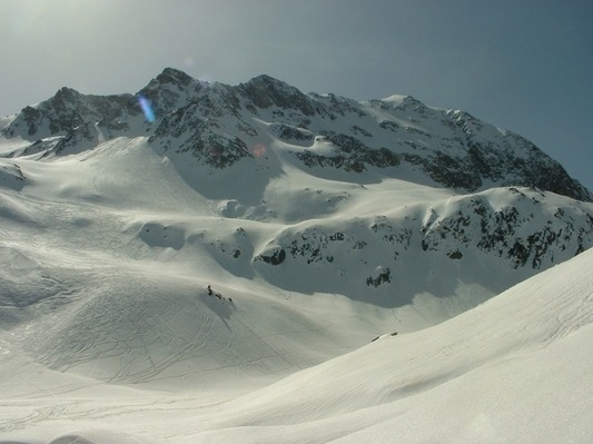 Montée par la piste forestière > 1750 puis SE sous Tete rouge. Traversée au dessus du Lac Tournant et plein gaz dans la combe NE. Descente dans l'immense pipe du ruisseau du Gd Mont ca passe encore bien.