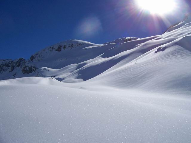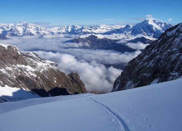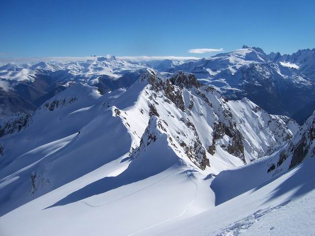 Sortie à diviser en 3 parties : poudre magnifique au dela de 2500, glauque en dessous de 2000, et correct entre les 2 avec une croûte a peu près portante en se faisant léger. A noter que les face et couloirs de l'Oisans commencent à prendre un aspect sympathique. Sinon, petite angoisse en redescendant de Villard-Notre-Dame quand j'ai vu de loin un gros paquet de blocs éclaté sur la route; finalement y'avait juste le passage pour la bagnole, mais ces quelques m3 n'étaient pas tombé depuis très longtemps!