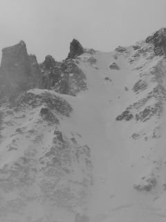 on passe sous la verte, puis au pied du col de la verte pour mettre peaux et raquettes sous les droites, cone de la NNE pris rive gauche, rimaye inexistante en plein centre, après tout droit au mieux.