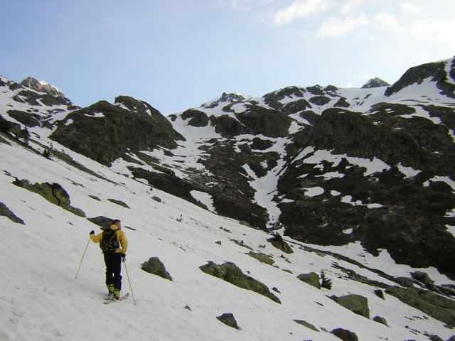 Partis pour le pic de la belle etoile, nous avons bifurqué au vu des nombreuses fissures de reptation sur l'itinéraire au dessus du grand clos. Belle course et belle pente finale. Portage de 1h20 récompensé, avec en plus plein de chamois à contempler